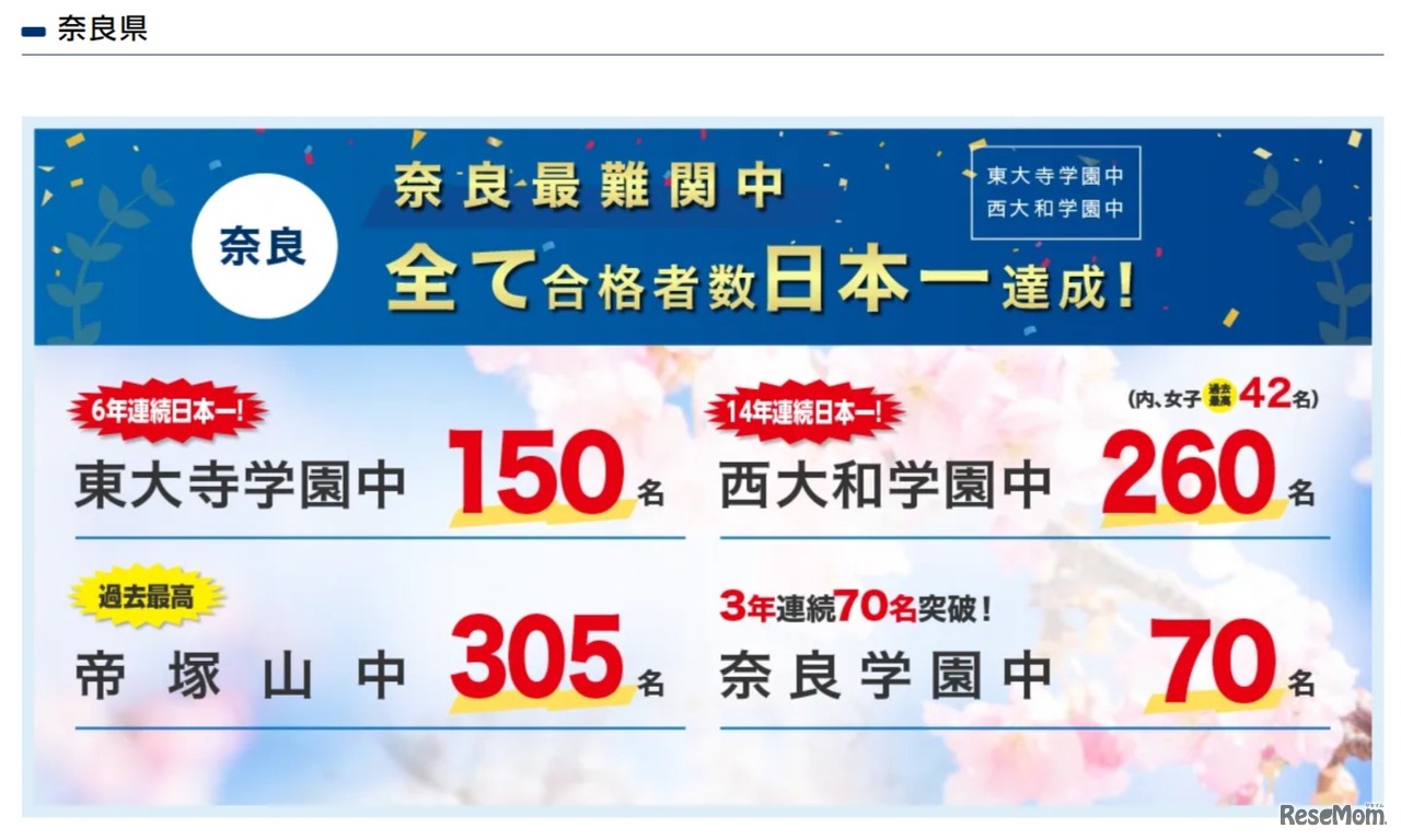 画像出典:浜学園 奈良県の学校の実績