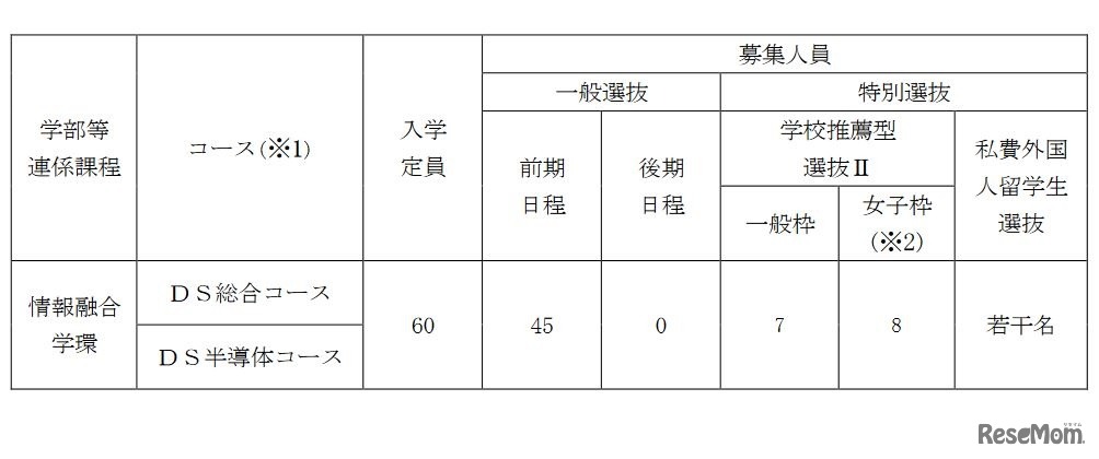 画像出典:熊本大学 情報融合学環の募集人員