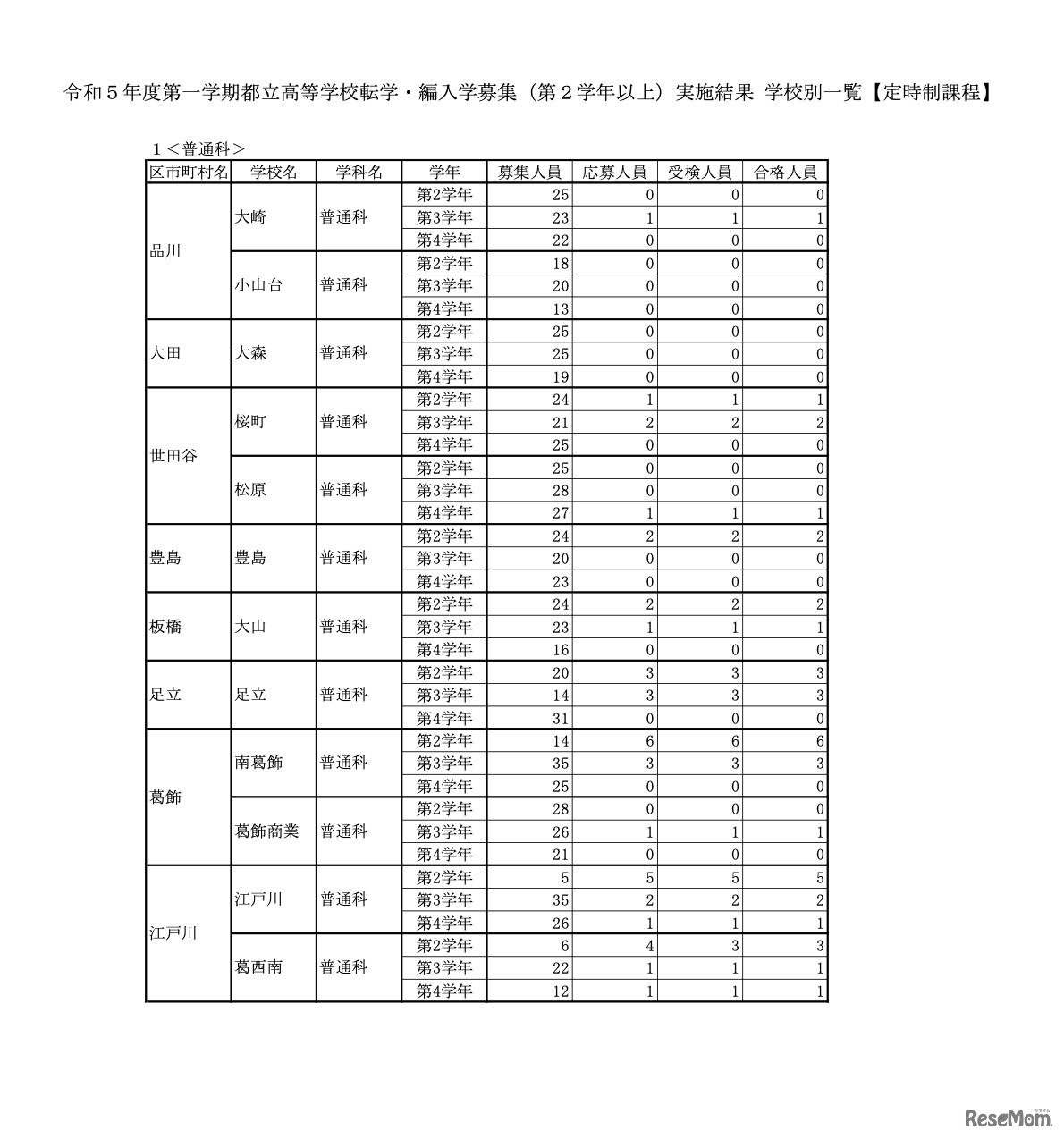 東京都教育委員会は2023年5月16日、2023年度(令和5年度)第1学期都立高等学校転学・編入学募集の実施結果について公表した。全日制170校で募集した結果、「区分1」「区分2」あわせて104人が受検し、54人が合格した。