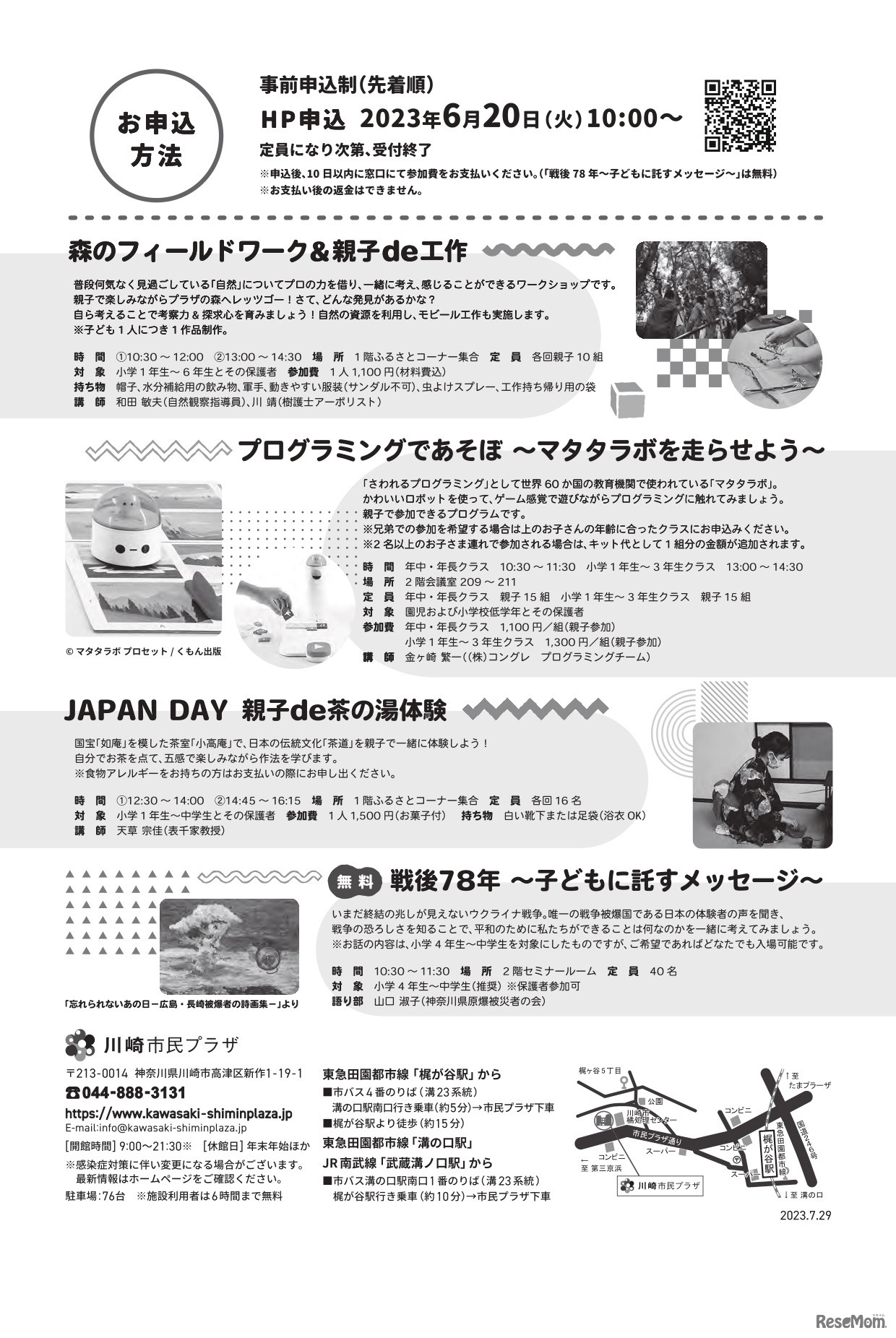川崎市民プラザは2023年7月29日、「夏休み子どもわくわくDAY」を開催する。夏休みの自由研究にもなるワークショップ等を実施。事前予約制の先着順で、6月20日より受付を開始する。