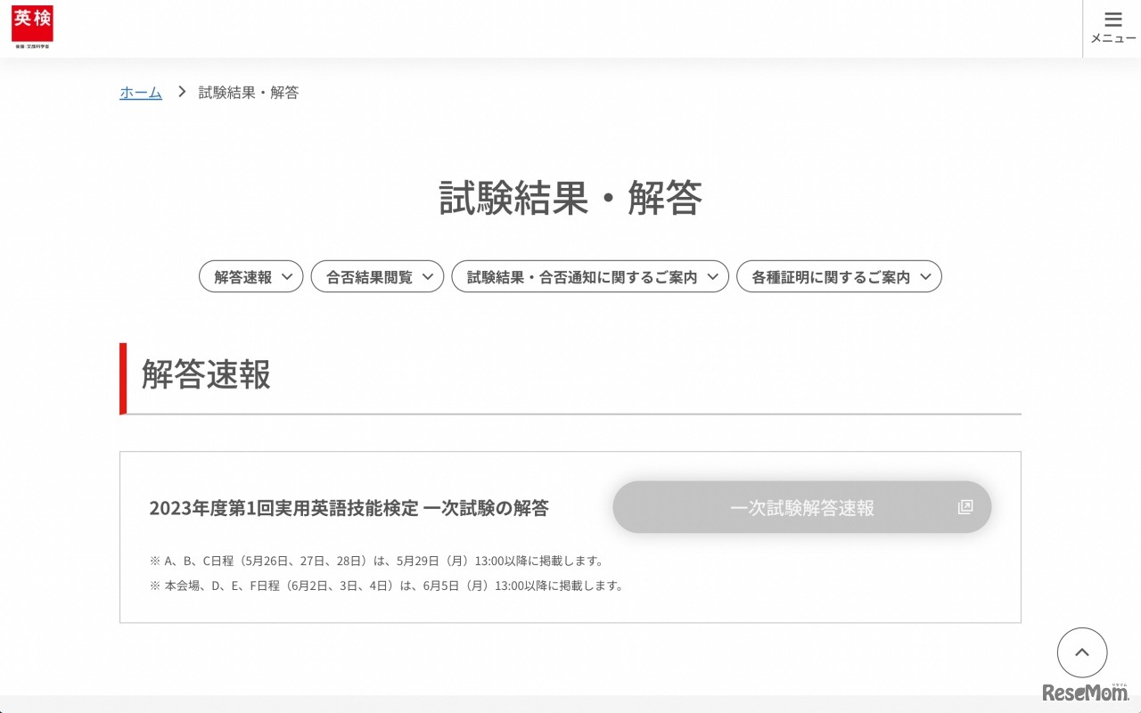 日本英語検定協会は、2023年5月26日~28日に実施した「2023年度第1回実用英語技能検定試験一次試験」の解答速報を5月29日にWebサイトに公開する。公開時間は午後1時以降を予定。