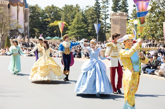 ~すべての夢が奏でるハーモニー~フィナーレは、すべての色が重なり合った美しいフロートとともに、40周年の衣装を身にまとったミッキーマウスとミニーマウス、そしておなじみの仲間たちが大集合します。そしてここから、たくさんの素晴らしい夢や瞬間が未来への色あざやかなハーモニーとなって広がっていきます。ミッキーマウスたちが乗ったフロートの先頭には、「40」の装飾がついています。(C) Disney As to Disney artwork, logos and properties: (C) Disney