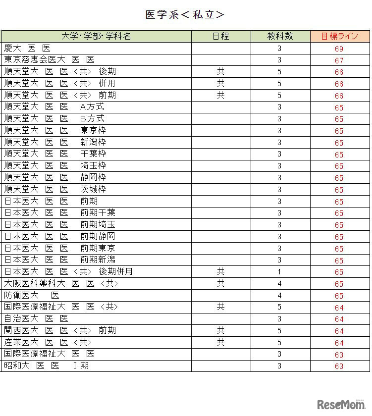 リセマムは駿台より情報提供を受け、大学別合格目標ラインを公開する。合格目標ラインの偏差値は、慶大(医-医)69、早大(政治経済-国際政治経済/法・共テ利用)68など。合格目標ラインは、2023年5月6日~15日に実施された第1回「駿台atama+共通テスト模試」に基づく。