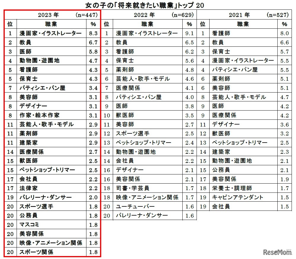 2023年3月に小学校を卒業した子供たちは、将来就きたい職業として、1位「スポーツ選手」に続き、2位「教員」、3位「漫画家・イラストレーター」などをあげたことが、クラレが2023年1月~3月に実施したアンケート調査より明らかになった。