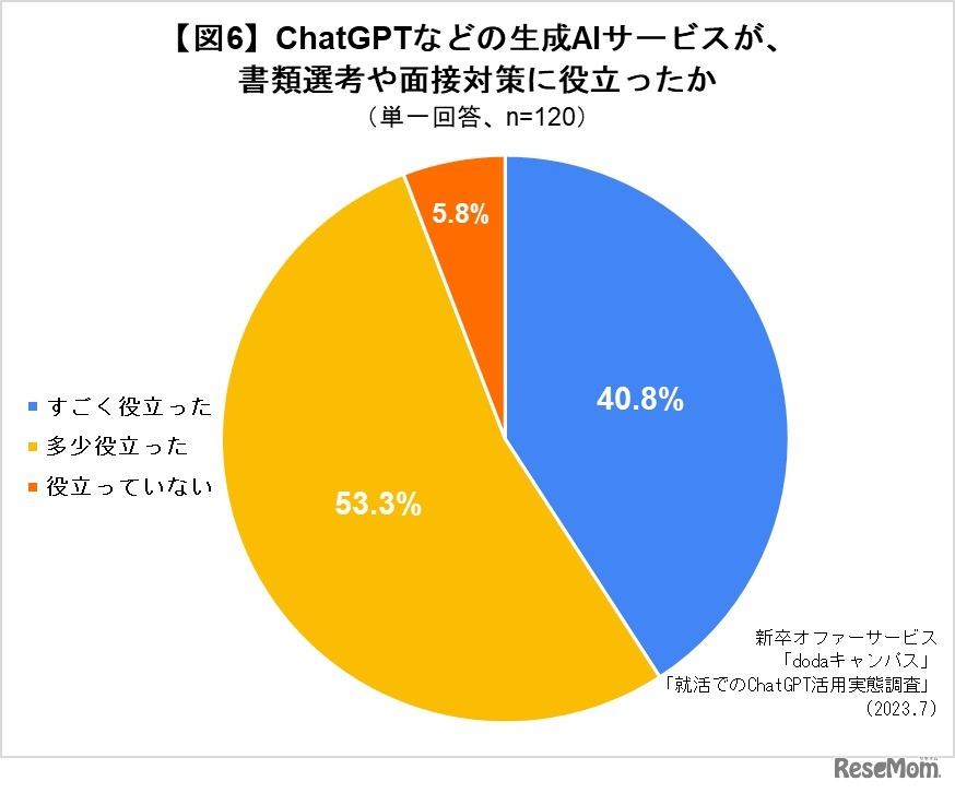 dodaキャンパスは、大学3・4年生を対象に、就活における「ChatGPT」の活用実態を調査し、2023年7月20日結果を公開した。就活の「企業の志望動機の作成」で多く利用されており、AIの活用で作業や情報整理の時間短縮、思わぬ気付きなどのメリットが評価されている。