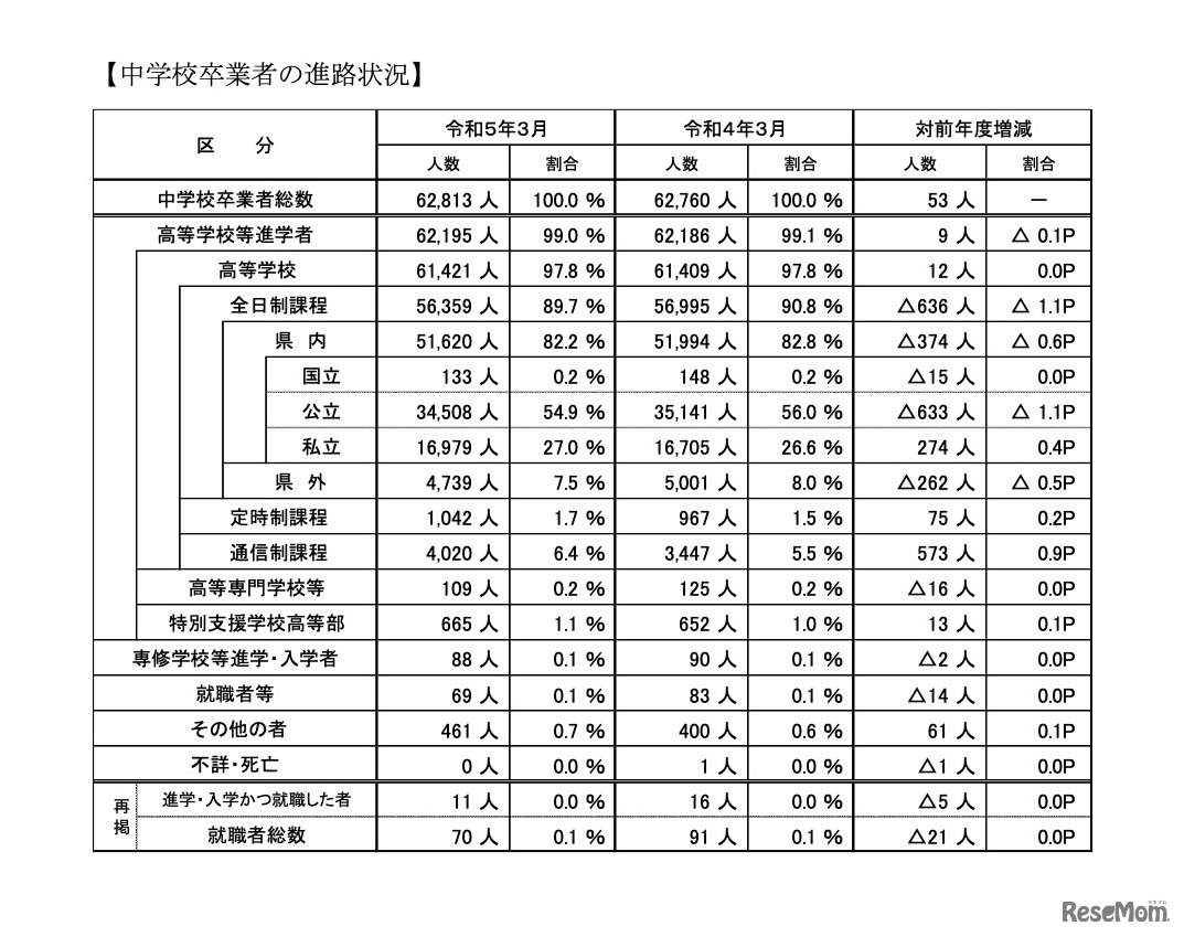 埼玉県 中学校卒業者の進路状況