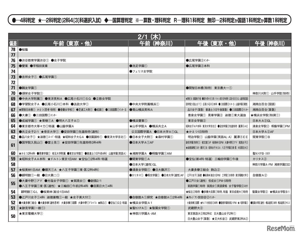 首都圏模試センターは2023年8月23日、「2024年中学入試予想偏差値一覧」9月版を公表した。合格率80%の偏差値を男女別・日程別にまとめて掲載。男子は開成や聖光学院、筑波大附駒場が78、女子は桜蔭が78。