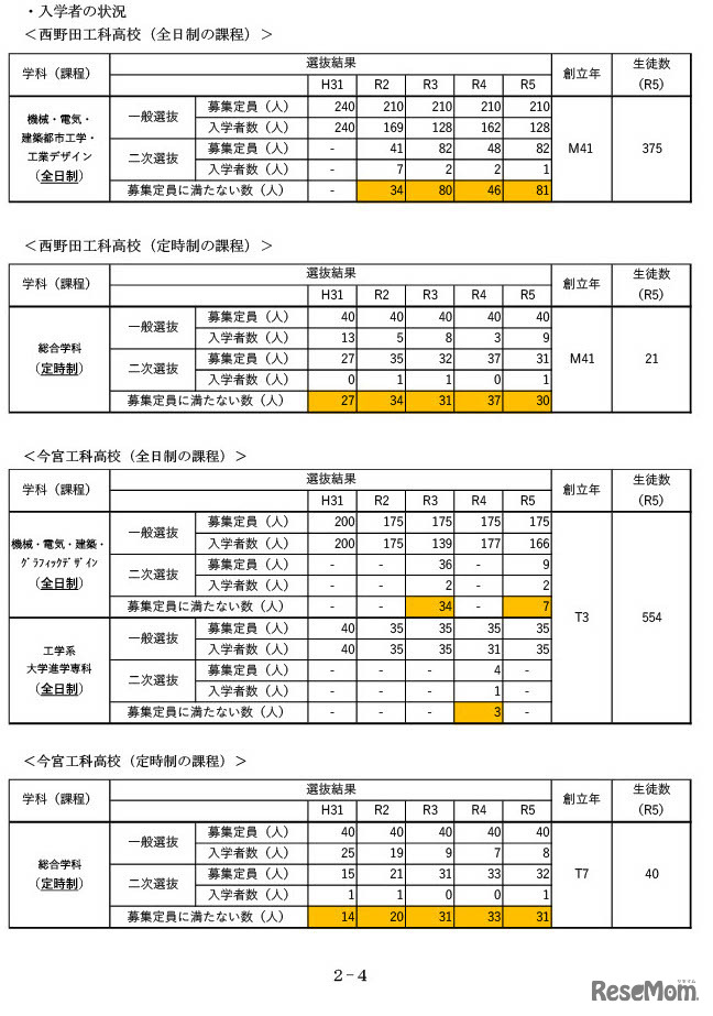 画像出典:大阪府 入学者の状況(西野田工科高校・今宮工科高校)