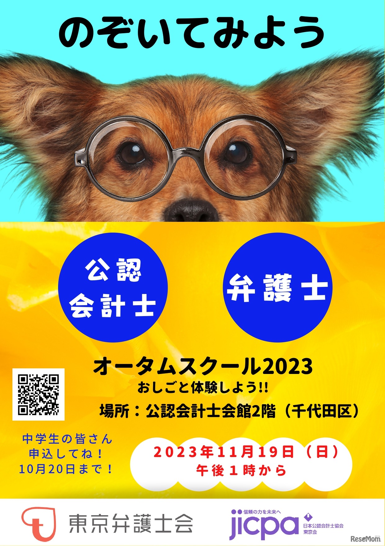 日本公認会計士協会東京会・東京弁護士会は2023年11月19日、中学生を対象に、案内役の公認会計士・弁護士と共に、会計や裁判を体験できる「オータムスクール2023」を公認会計士会館にて開催する。定員72名。申込多数の場合は抽選となる。参加費無料。締切りは10月20日。