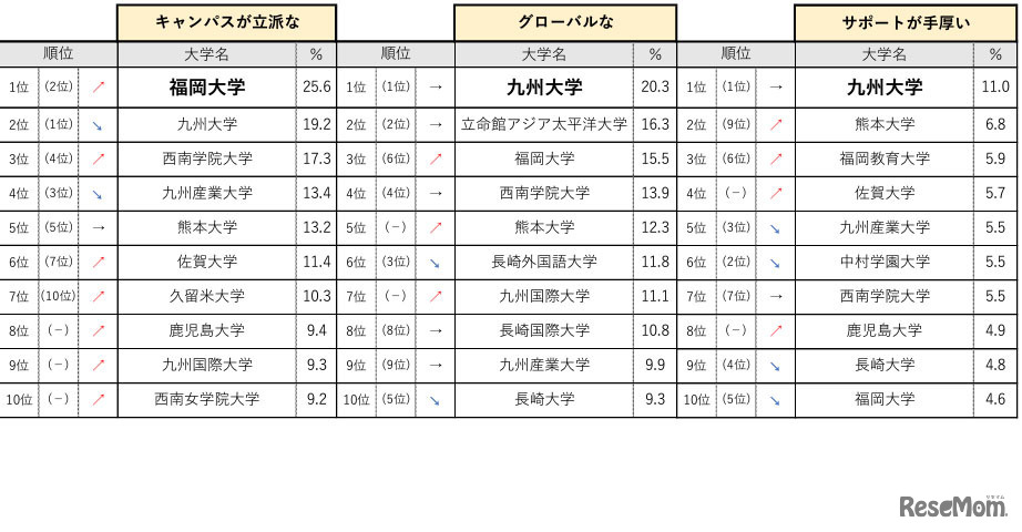 画像出典:マイナビ進学総合研究所「大学認知度・イメージ調査2023」 九州・沖縄エリア