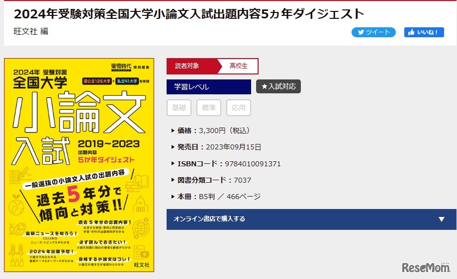 画像出典:旺文社 2024年受験対策 全国大学小論文入試2019~2023出題内容5か年ダイジェスト