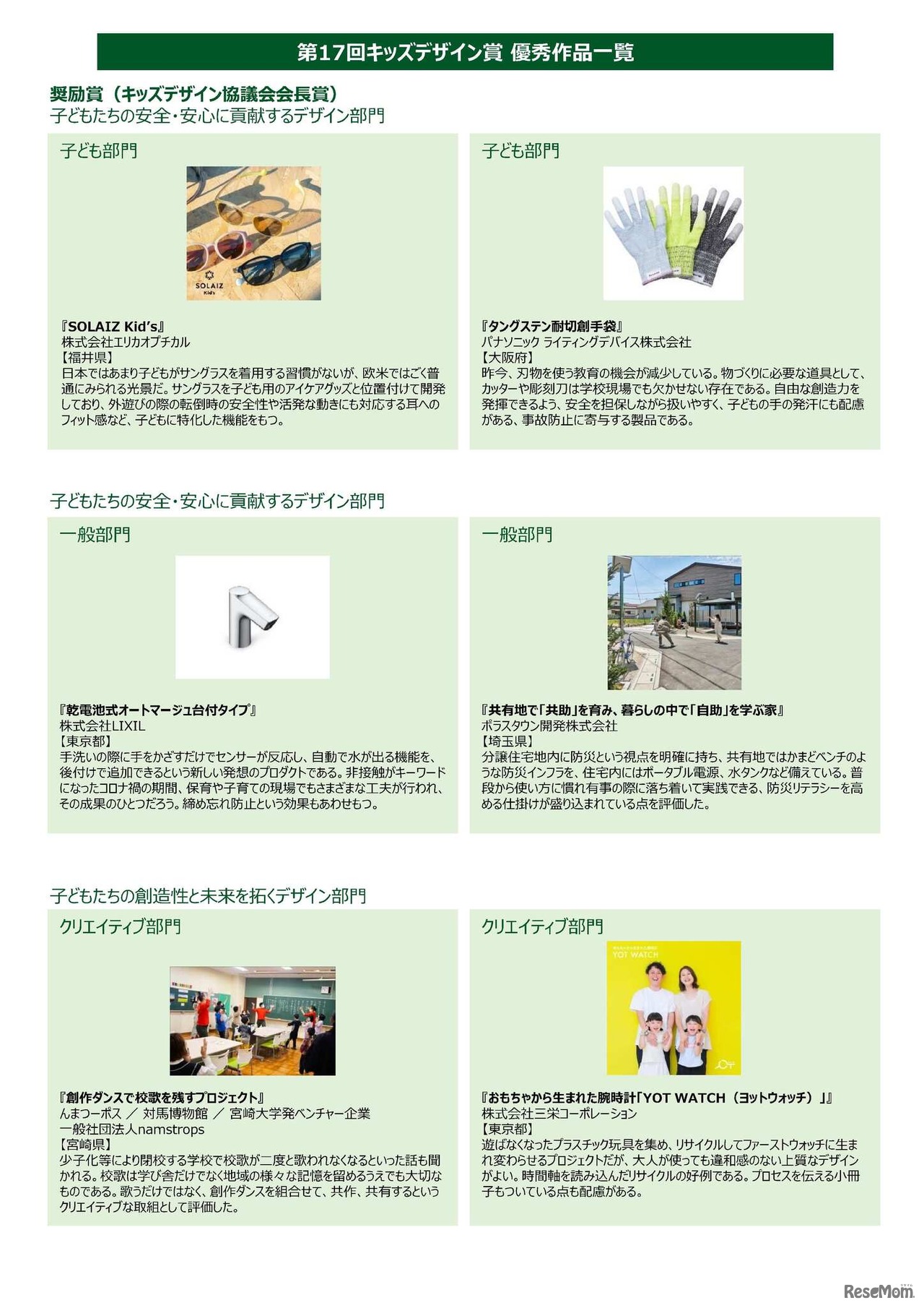 第17回キッズデザイン賞 優秀作品一覧