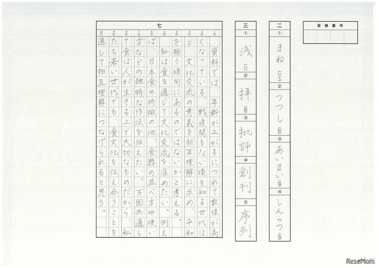 国語:解答用紙と模範解答