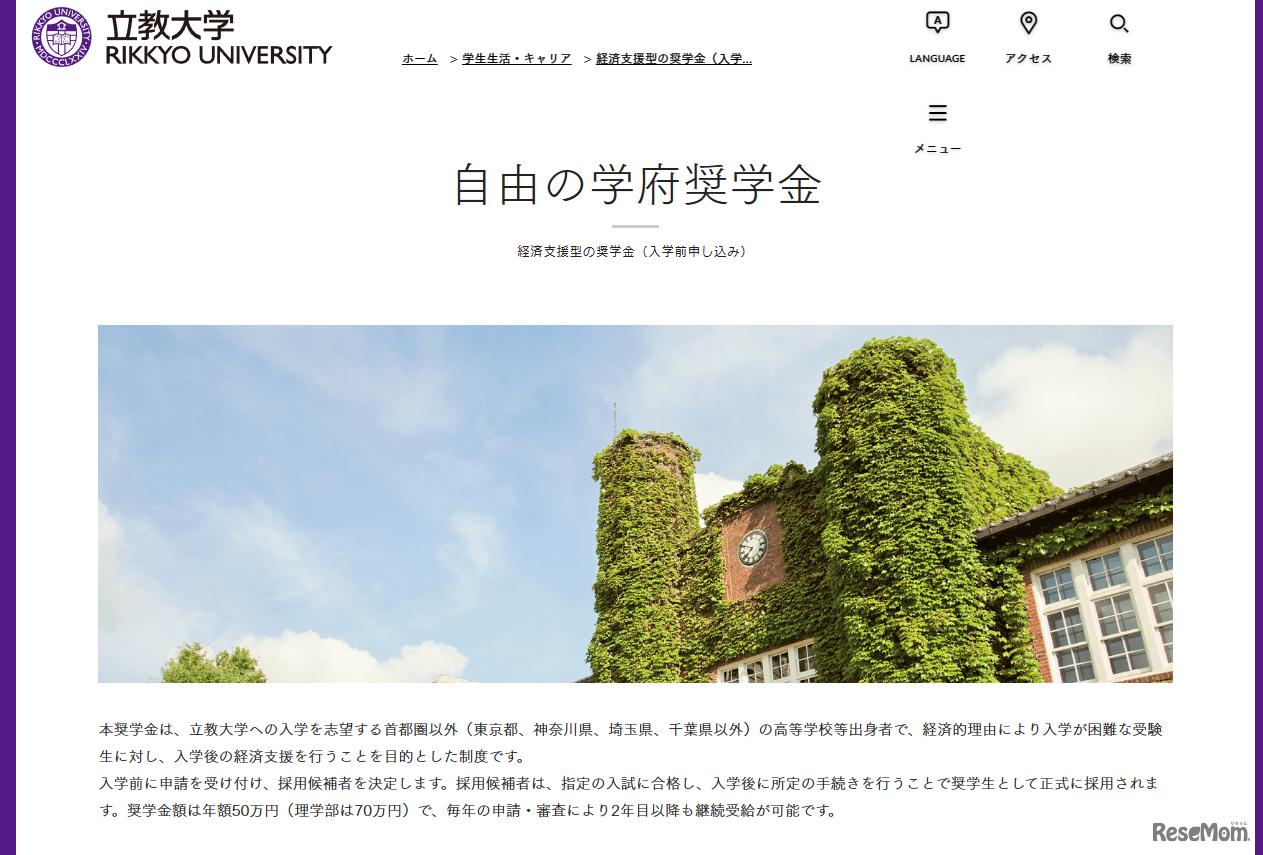 大学受験前に奨学金の給付が確約できる「入学前予約型給付奨学金」は、11月に申請期間を設定している大学が多い。各大学は、独自に返金不要の奨学金制度を設け、入学後の経済支援を行っている。首都圏の私立大学10校の奨学金情報をまとめた。