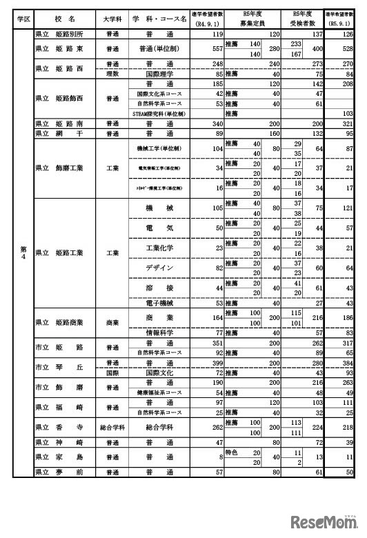 兵庫県教育委員会は2023年10月2日、2024年度(令和6年度)高等学校進学希望者数等調査の結果を公表した。9月1日現在の希望倍率は、神戸(理数・総合理学)2.88倍、市立西宮(理数・グローバルサイエンス)2.70倍など。