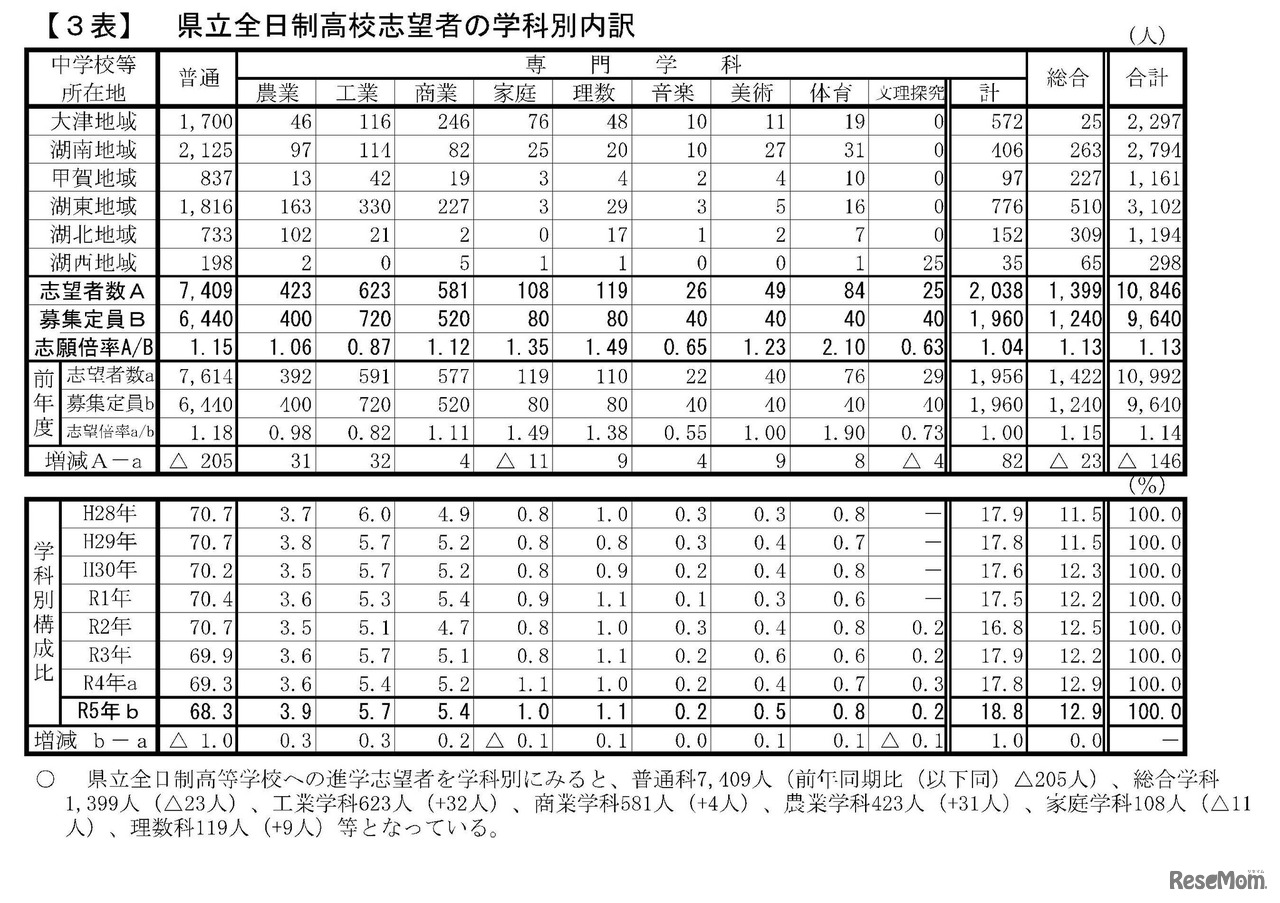滋賀県教育委員会は2023年10月17日、2024年3月に中学校、義務教育学校および特別支援学校中学部卒業予定者の第1次進路志望調査の結果を公表した。2024年3月卒業予定者総数1万3,961人のうち、99.2%は高等学校などへの進学を希望。