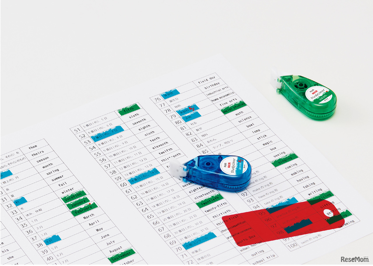 プラスは、苦手な勉強や暗記が楽しくなるマーカーテープ「スタディライナー」と「スタディライナー 暗記用」を2023年11月20日に発売する。「スタディライナー」はかわいくて楽しい5種類の柄で、メーカー希望小売価格(税込)は363円。「スタディライナー 暗記用」は、遊び心のある2柄で暗記用赤シート付418円。
