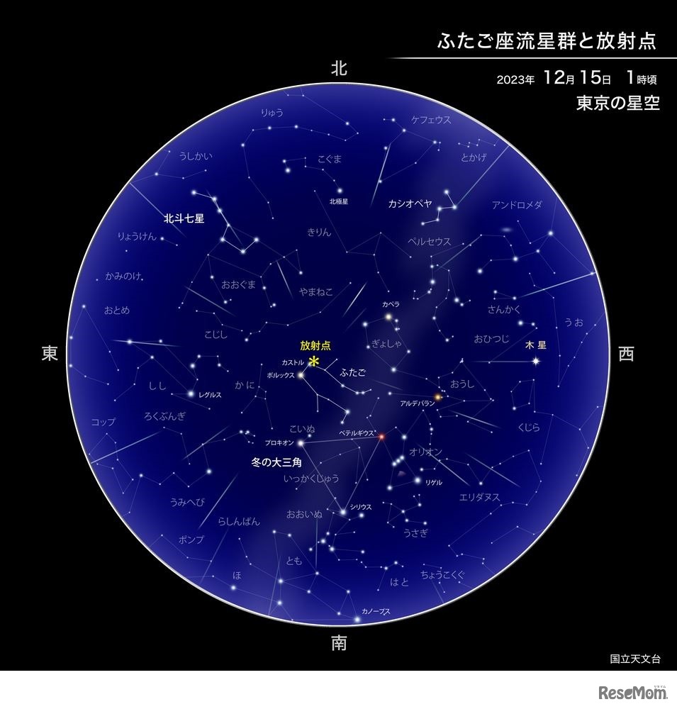 ふたご座流星群が、2023年12月14日夜から15日明け方にかけて出現ピークを迎える。2023年は月明かりの影響がまったくないうえ、放射点が高い時間帯に極大を迎える好条件で、ここ数年でもっとも多くの流れ星が観察できそうだと期待されている。