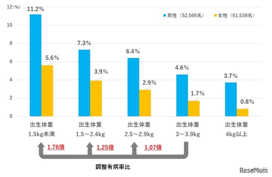 国立成育医療研究センターの社会医学研究部の研究グループは2023年11月21日、出生体重が小さいほど、成人後期に心血管疾患のリスクが高く、高血圧や糖尿病などの生活習慣病になりやすいという研究成果を発表した。