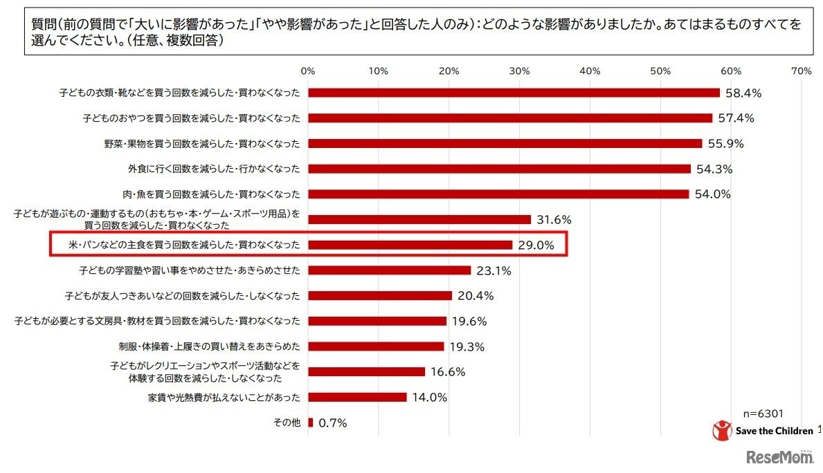 セーブ・ザ・チルドレン・ジャパンは2023年11月30日、「冬休み子供の食応援ボックス」申込者アンケートの結果を公表した。物価上昇の影響によって約9割の世帯で十分な食料が買えず、4人に1人が子供の食事の量を減らしているなど、物価上昇が子供の食に深刻な影響を及ぼしていることが明らかとなった。