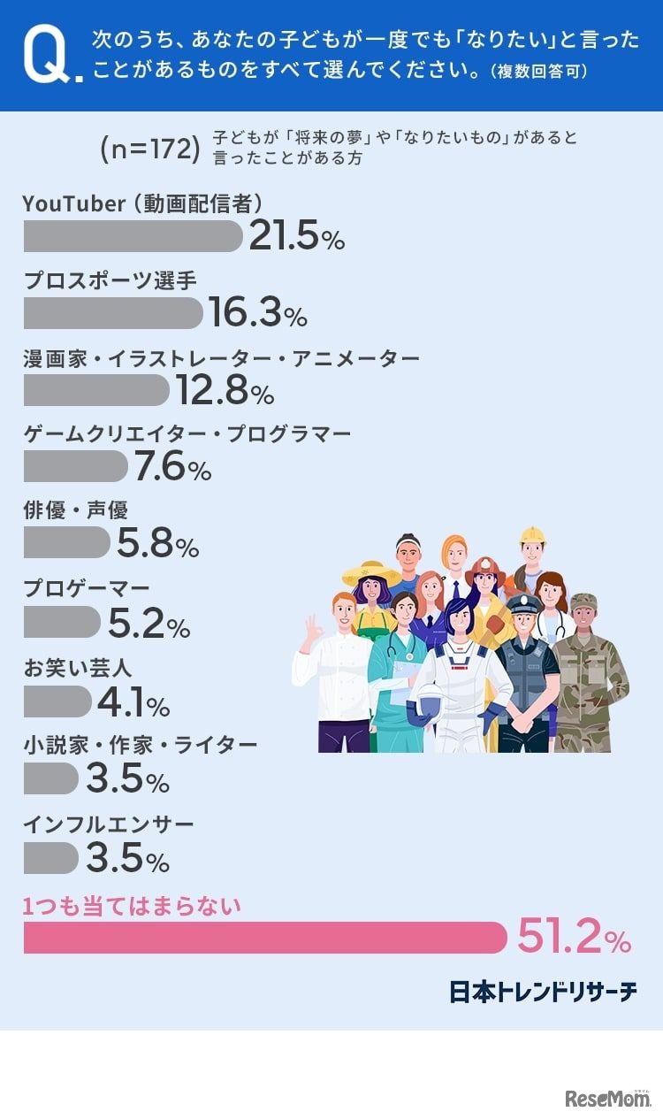 つぎのうち、あなたの子供が1度でも「なりたい」と言ったことがあるものをすべて選んでください。(複数回答可)