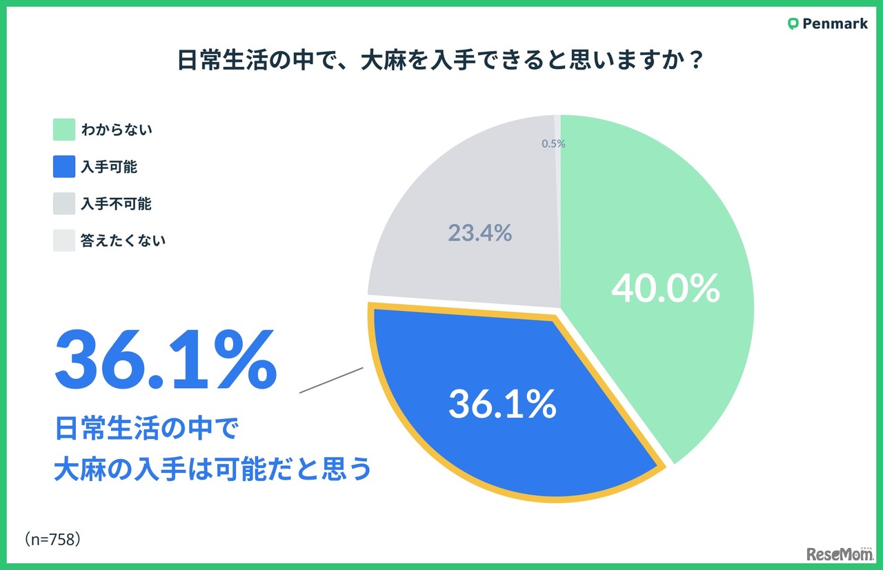 ペンマークの「Z世代の大麻使用に関する意識調査」から、大麻乱用問題の認識率は7割、リスクの理解率も8割と高いが、約4人に1人が条件つきでの使用を許容しており、日常生活で大麻へのアクセスが比較的容易と感じる学生が多いことが明らかになった。