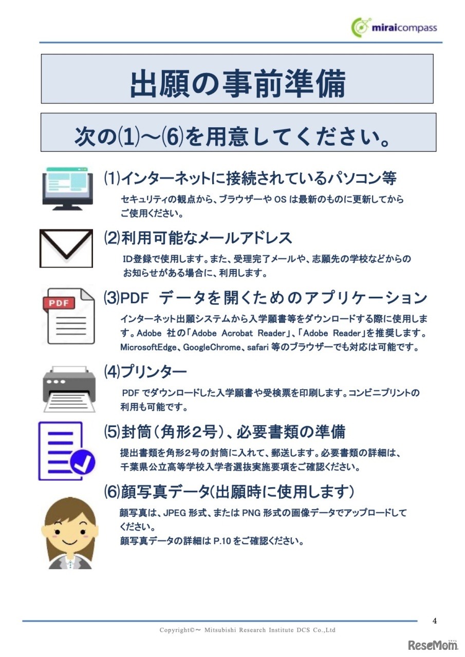 千葉県教育委員会は2023年12月25日、2024年度(令和6年度)千葉県公立高等学校入学者選抜におけるインターネット出願方法の詳細について公表した。詳細な手続き方法などを記した志願者向けのマニュアルも掲載。2024年度は全日制15校がインターネット出願を実施する。
