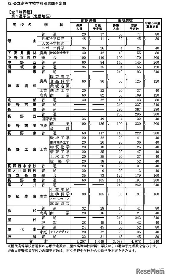 長野県教育委員会は2024年1月5日、2024年度(令和6年度)高等学校入学志願者第2回予定数調査の結果を公表した。公立全日制の倍率は、前期選抜が1.42倍、後期選抜が1.33倍。後期選抜の学校・学科別では、野沢北(理数)8.75倍、伊那北(理数)8.50倍などが高かった。