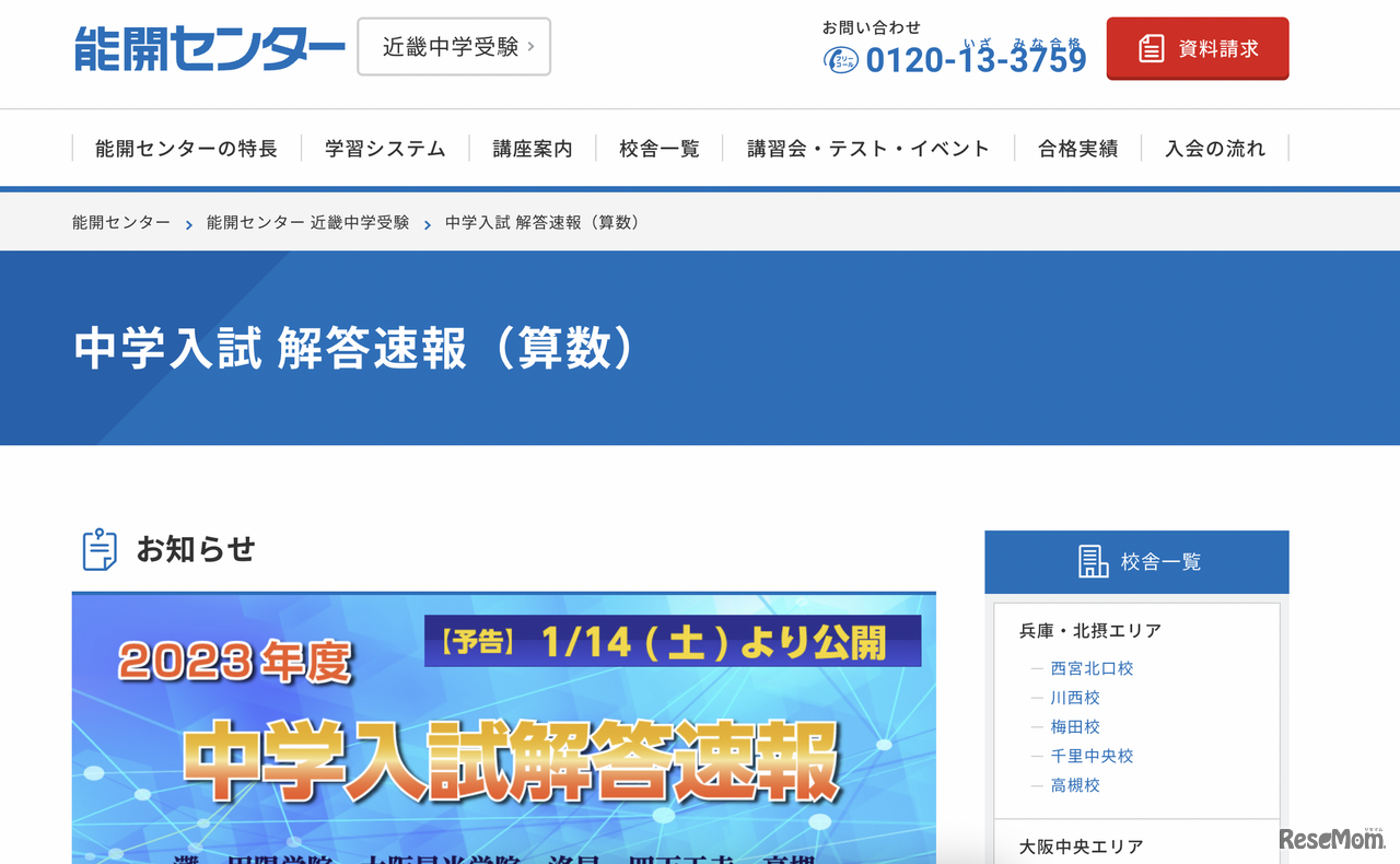 四谷大塚は特設Webページ「2026年度入試 中学入試解答速報」…