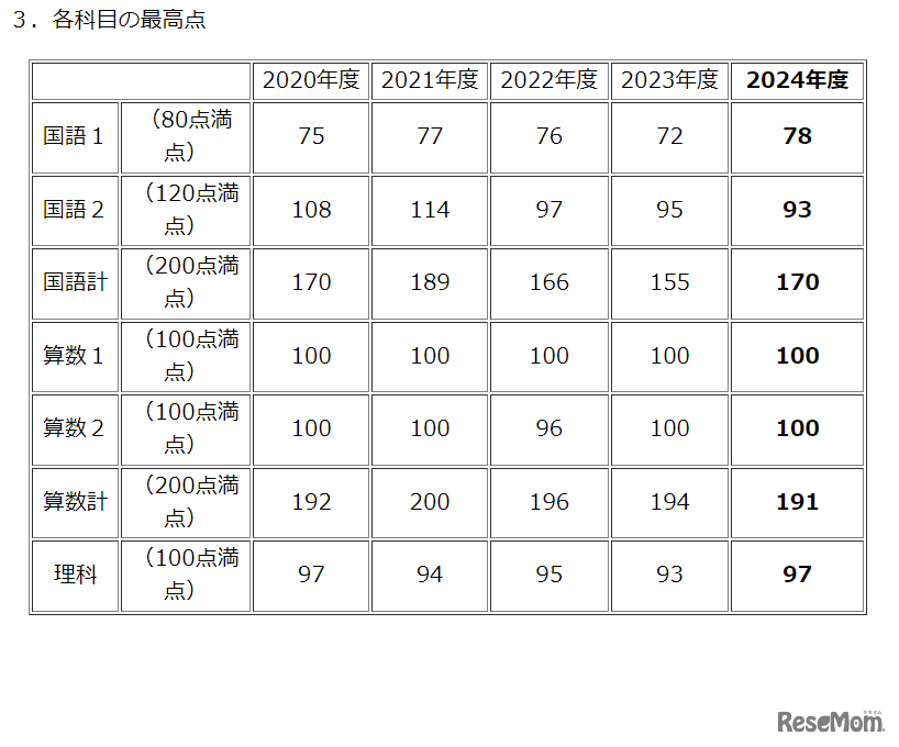 画像出典:灘中学校・灘高等学校 各科目の最高点