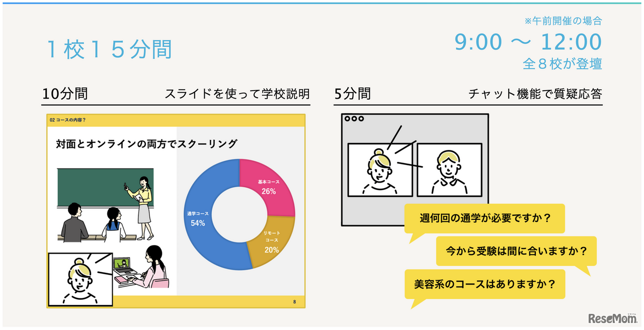 リクメディアは2024年1月27日と28日、不登校の中高生や保護者などを対象に、スマホで簡単に参加できる通信制高校の合同説明会「まるごと通信制フェスタ2024」を開催する。参加費無料。事前申込制。カメラOFF、ミュートで参加できるという。