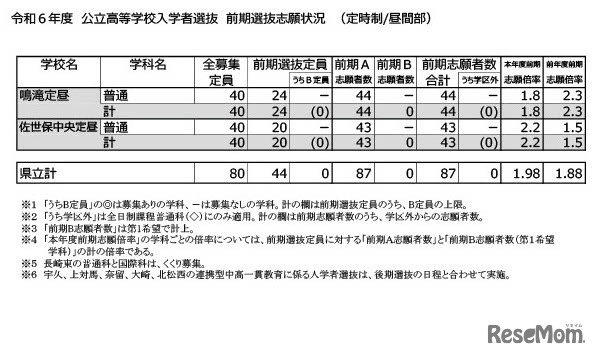 長崎県は2024年1月19日、2024年度(令和6年度)長崎県公立高等学校入学者選抜前期選抜・離島留学特別選抜志願状況について公表した。全日制の前期志願倍率は1.68倍。学校学科別では長崎西(普通・理系)5.9倍がもっとも高かった。