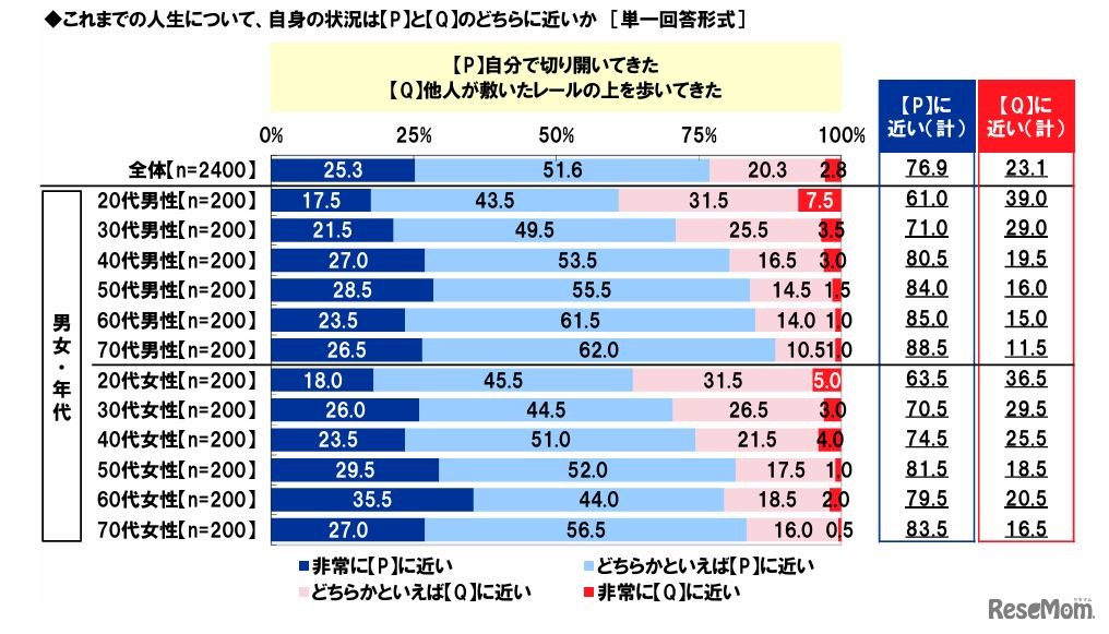 画像出典:アクサ生命保険 これまでの人生について、自身の状況はどちらに近いか