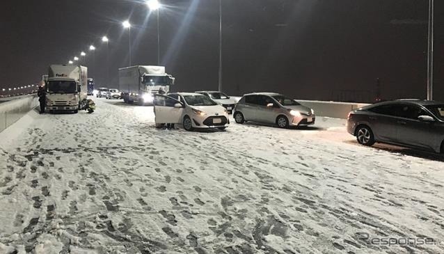 《写真提供 国交省》 2022年1月6日の大雪:車両の滞留(首都高速中央環状線)