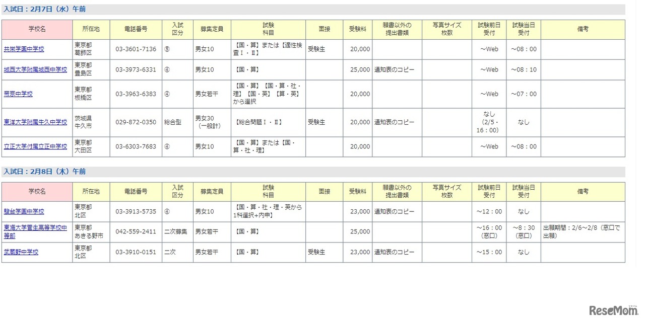 日能研は「これから出願可能な学校」をまとめ、Webサイトで公開した。男子校、女子校、共学校の区分や地域を指定して、出願に間に合う中学校を検索できる。