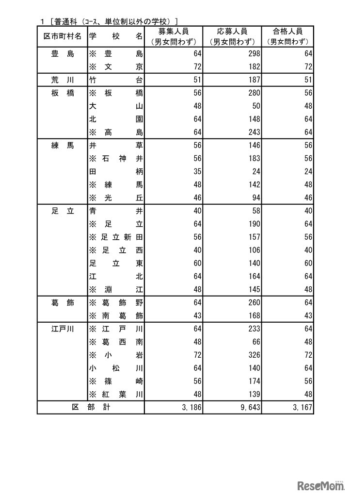 画像出典:東京都教育委員会 東京都立高校推薦選抜 普通科(コース制・単位制以外)