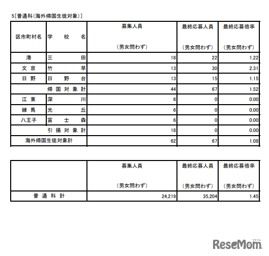 東京都教育委員会は2024年2月14日、2024年度(令和6年度)東京都立高等学校入学者選抜の最終応募状況を発表した。全日制は3万343人の募集人員に対して4万2,017人が志願し、最終応募倍率は1.38倍だった。