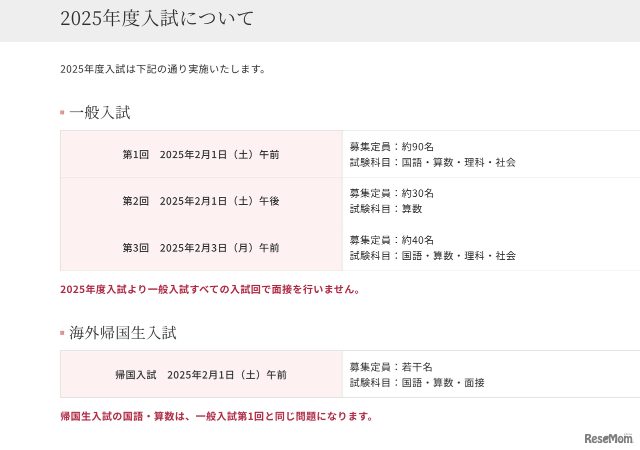 画像出典:日本女子大学附属中学校 2025年度入試について