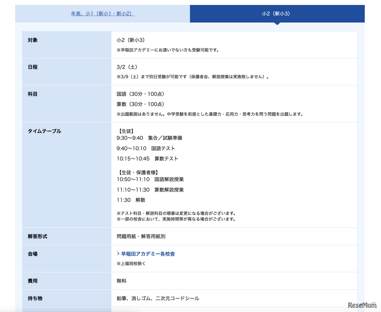早稲田アカデミーは2024年3月2日、新小1、2、3年生を対象に「ワセアカ チャレンジテスト」を開催する。テスト科目は国語と算数。参加費無料。締切りは2月28日。当日は保護者会も実施。テストは基本コースへの入塾テストを兼ねており、成績優秀者には特待認定があるという。