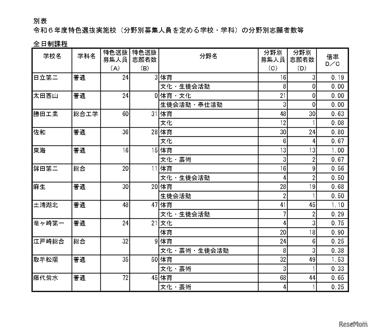 令和6年度茨城県立高等学校第1学年入学志願者数等(志願先変更後)