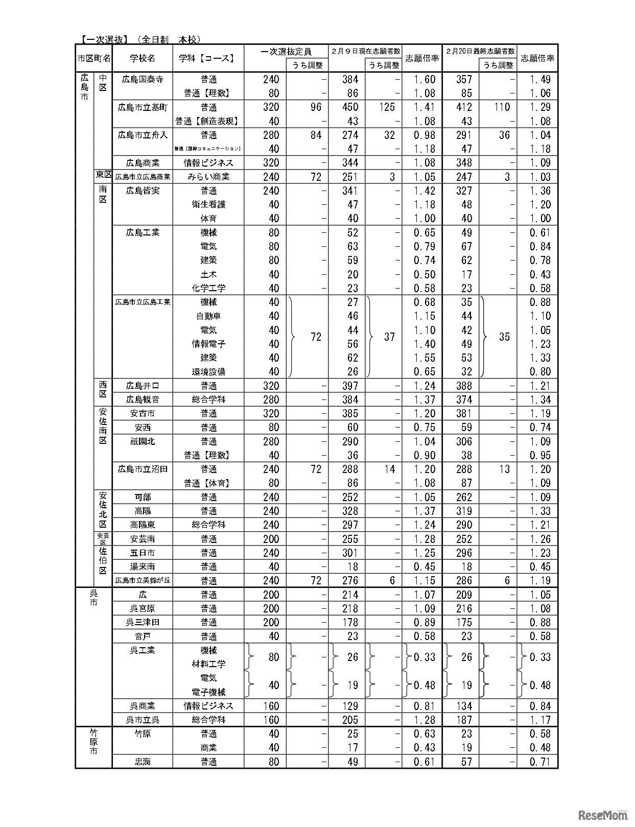 広島県教育委員会は、2024年度(令和6年度)広島県公立高等学校入学者選抜一次選抜、連携型中高一貫教育に関する選抜、帰国生徒および外国人生徒等の特別入学に関する選抜の志願状況(確定)を発表した。