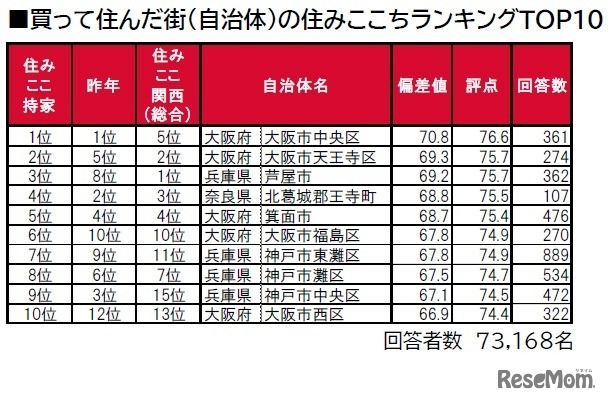 買って住んだ街(自治体)の住みここちランキングTOP10