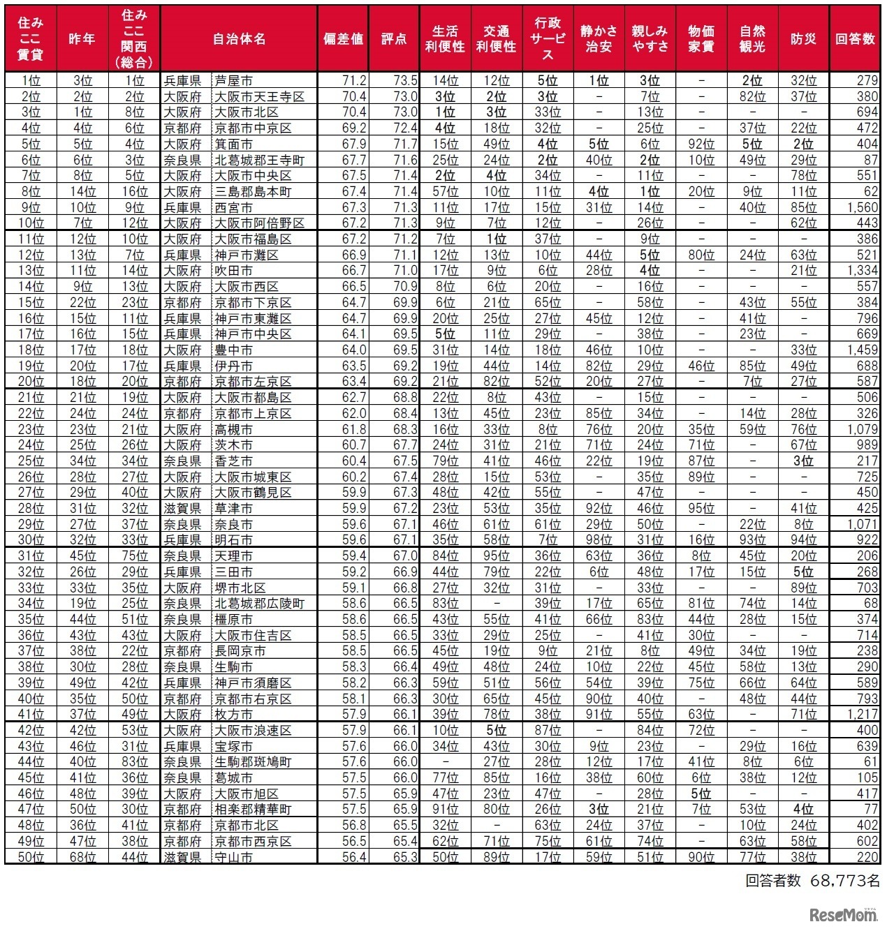 街の住みここちランキング関西版、持家1位は2年連続 7枚目の写真・画像