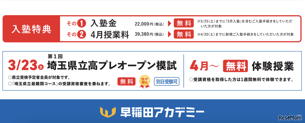 早稲田アカデミーは2024年4月、最難関5校合格を目指す「埼玉県立最難関コース」を大宮・川口・北浦和・志木校に新規開講する。受講資格審査を兼ねたプレオープン模試は、3月23日に実施される。参加費無料。