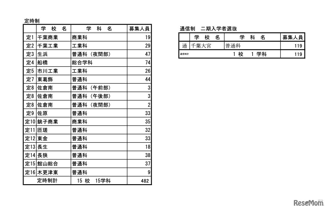 千葉県教育委員会は2024年3月4日、2024年度(令和6年度)千葉県公立高等学校入学者選抜の入学許可候補者数および第2次募集等の募集人員を公表した。一般入学者選抜における全日制の課程の入学許可候補者数は2万8,422人。入学許可候補者数が募集人員に満たなかった、全日制56校92学科で第2次募集を実施する。