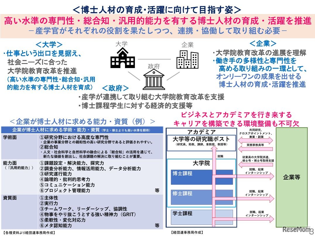 画像出典:日本経済団体連合会 博士人材と女性理工系人材の育成・活躍に向けた提言(概要版)