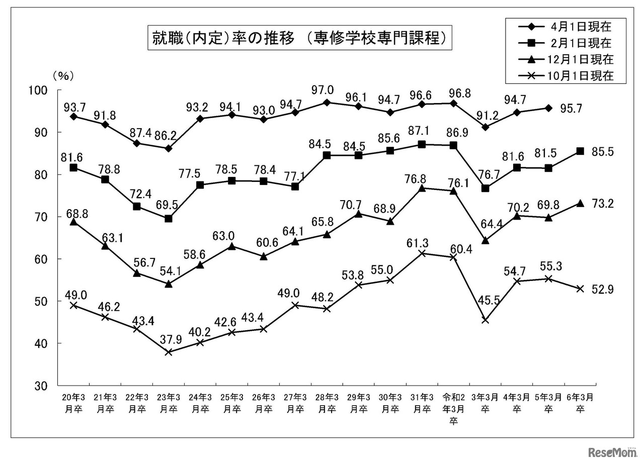 就職内定率の推移 (専修学校専門課程)