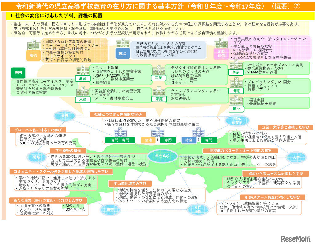 鳥取県教育委員会は2024年3月16日、2026年度以降の高校教育改革の方向性を示した「令和新時代の県立高校教育の在り方に関する基本方針」を策定し公表した。2035年度までの10年間で募集定員を720人減らし、再編や統合を進める。2030年度までに再編する学校は2024度中に公表予定。