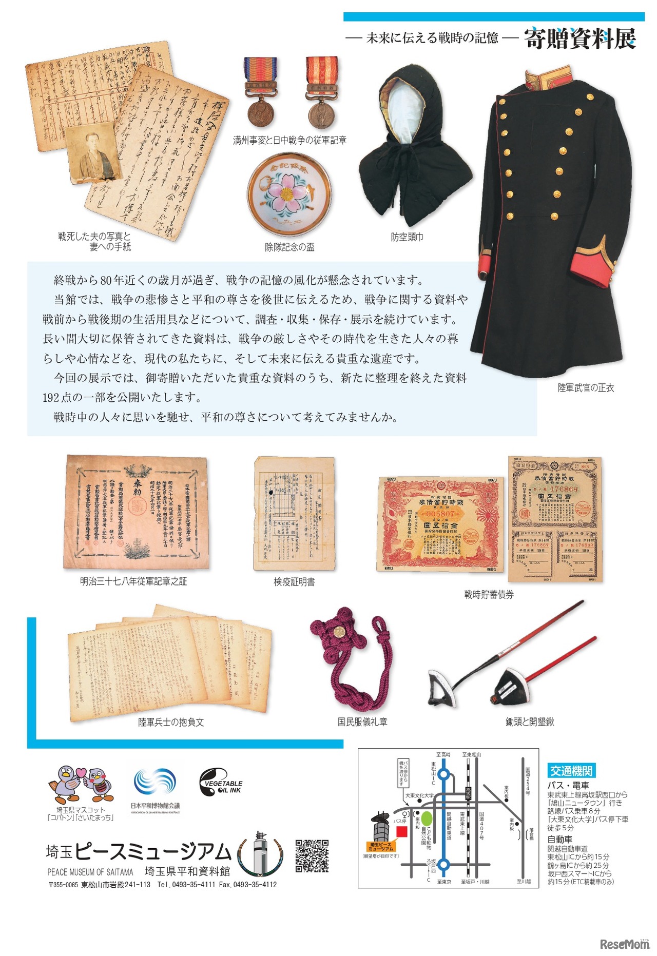 埼玉ピースミュージアム 令和5年度(2023年度)テーマ展「寄贈資料展―未来に伝える戦時の記憶―」案内