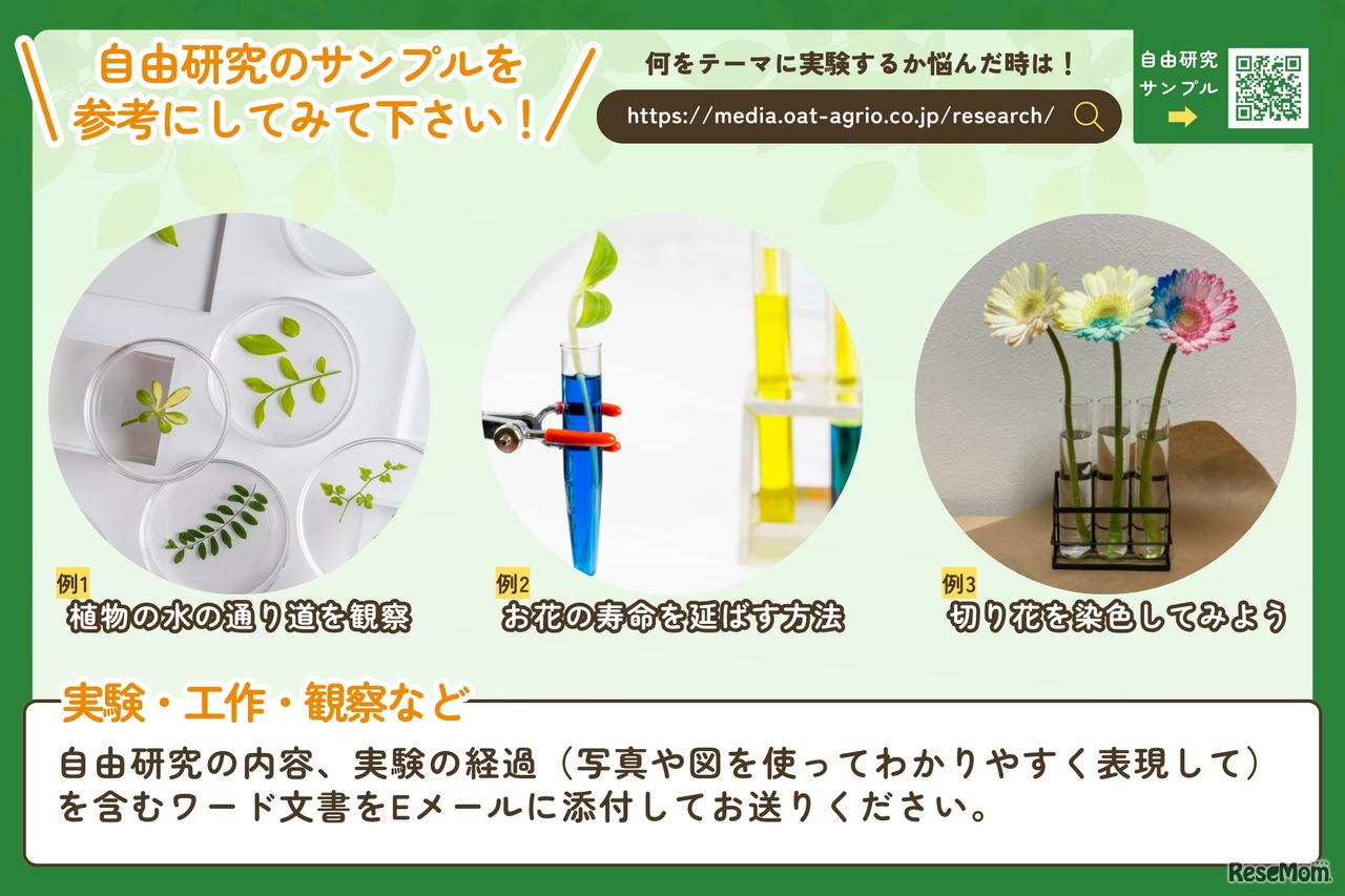 OATアグリオは「栽培の楽しさ」をより多くの人に知ってもらうため「植物に関する自由研究コンテスト」を開催する。自由研究の内容、実験の経過を含むワード文書をメールに添付して応募する。応募締切は5月25日。個人・団体、年齢問わず誰でも、何件でも応募可能。